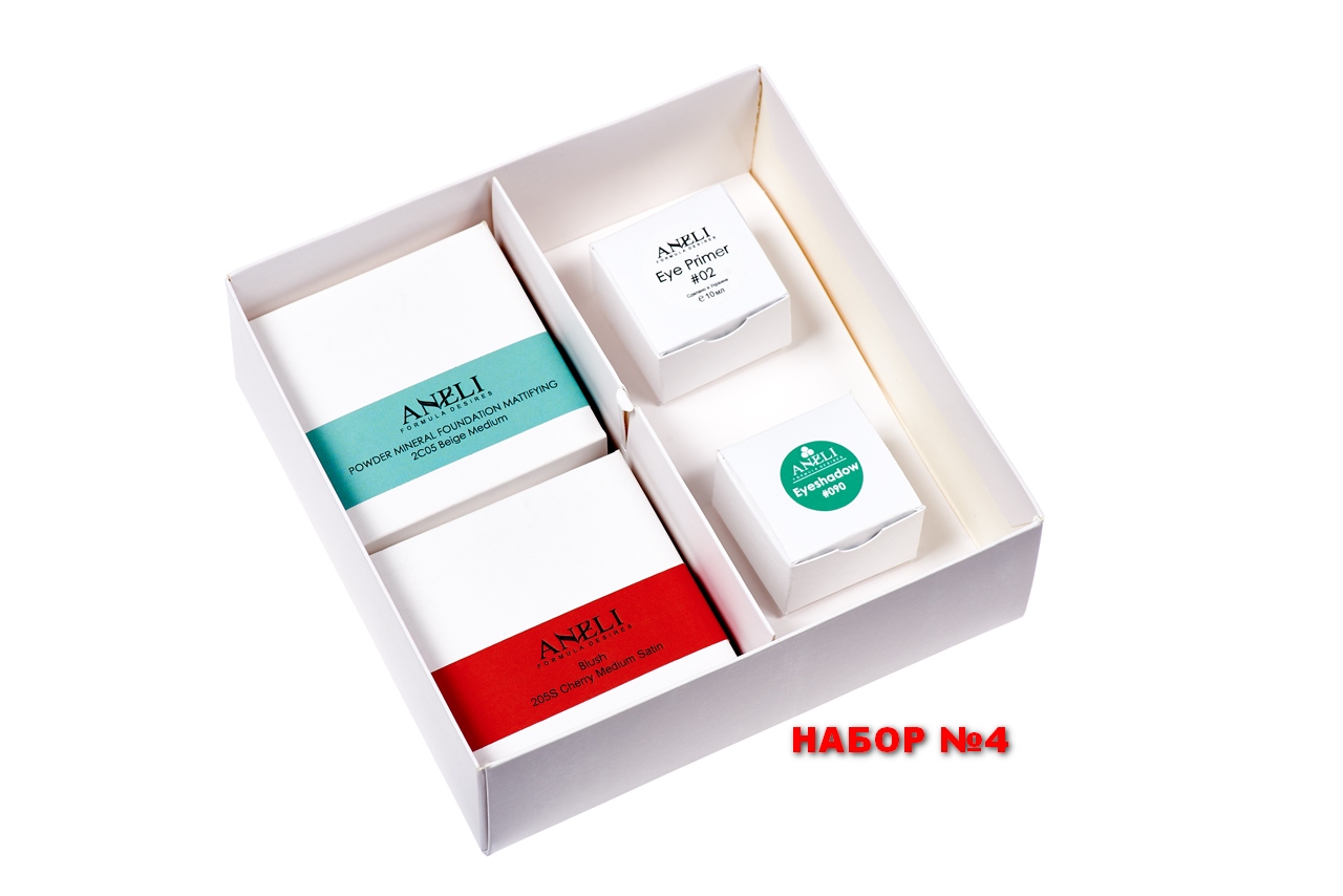 Набор №4: Пудра, Праймер для век, Тени, Румяна, Подарочная коробка