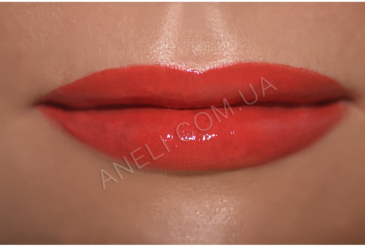 Нанесите помаду на губы с помощью аппликатора и равномерно распределите.